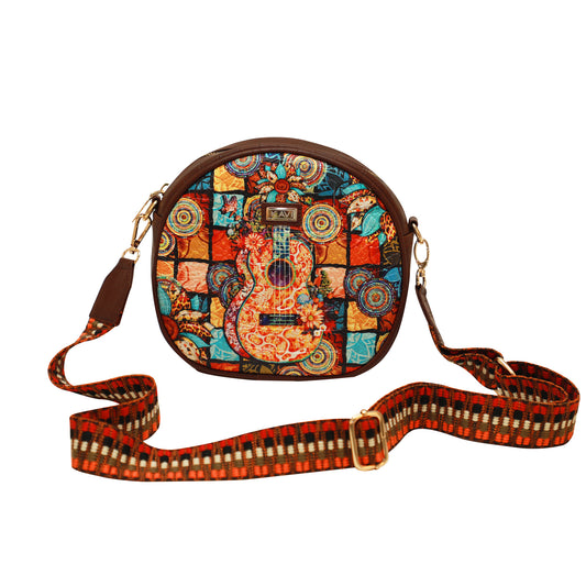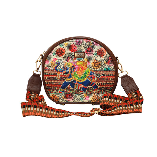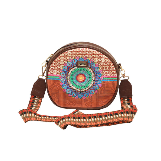 Elevate your style with our printed round sling bag. Chic and versatile, it adds flair to any outfit. Compact yet spacious, it's your perfect on-the-go companion for a touch of fashion, making it a must-have accessory for any outing.